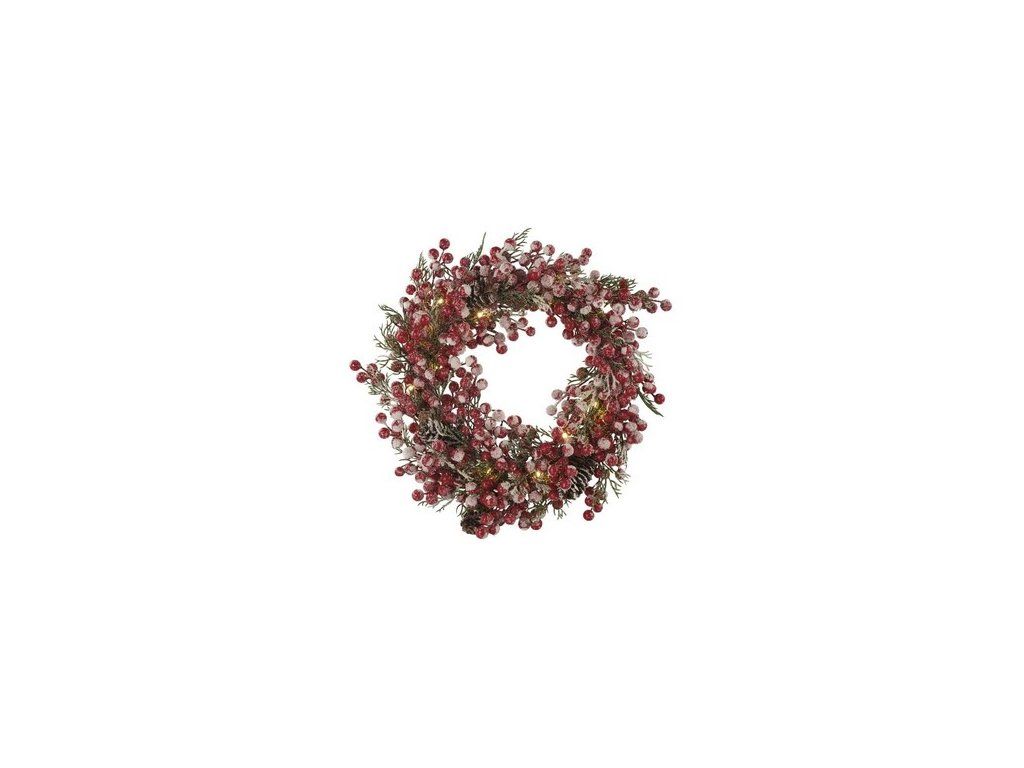 | Obchodný text: | Veniec na dvere so svetielkami a ozdobami, 20 lediek. Na batérie 2xAA. Vnútorné použitie. |