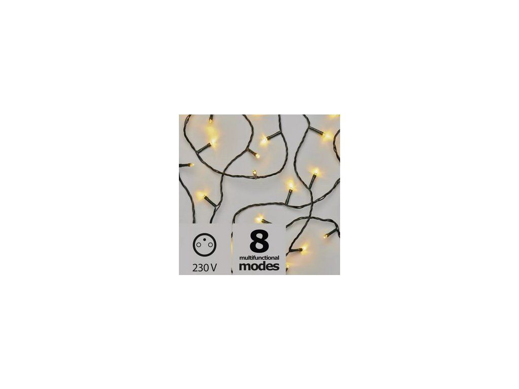 | Obchodný text: | LED reťaz s 8 funkciami svietenia. Dĺžka 18 metrov, 180 lediek. Teplé biele svetlo. Vonkajšie aj vnútorné použitie. |