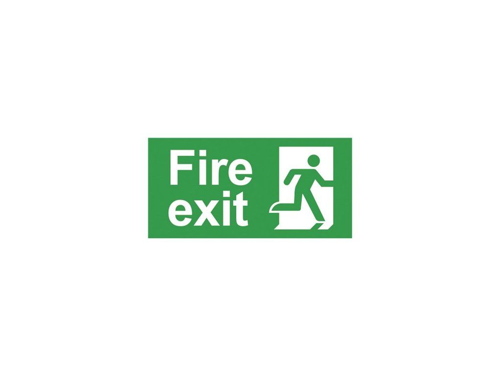 Samolepka k núdzovému svietidlu LC01-01 - Fire exit - východ v prípade požiaru.