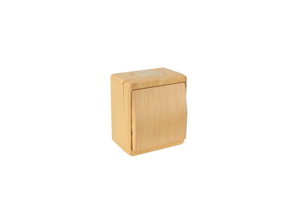 Spínač č.1 dvojokruhový na povrch, imitácia dreva.