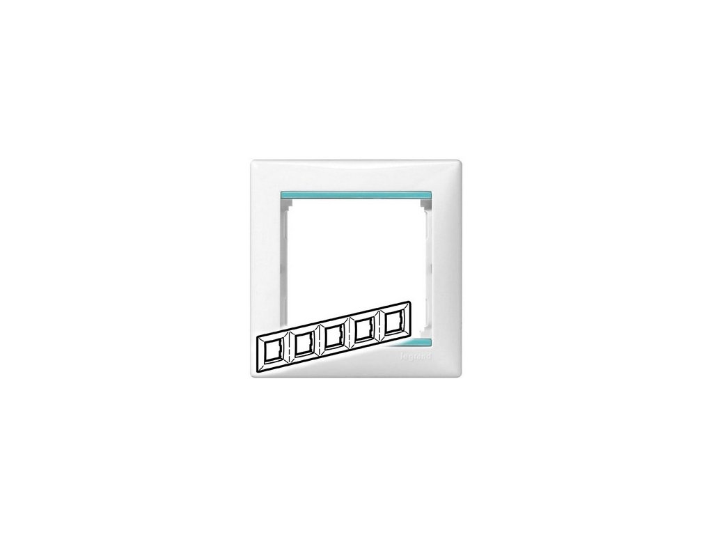 | Obchodný text: | 5-násobný vodorovný rámik na vypínače a zásuvky VALENA, biely s opálovomodrým prúžkom. |