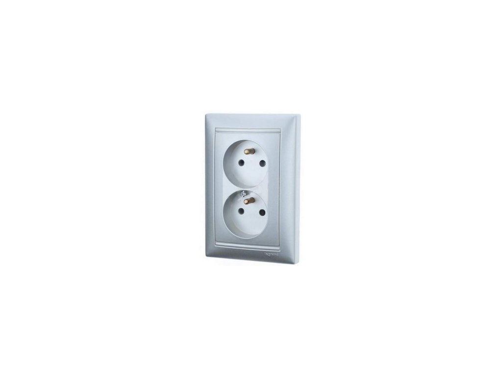 VALENA Zásuvka 2x 2P+T s prepäť.ochranou hliník S70290