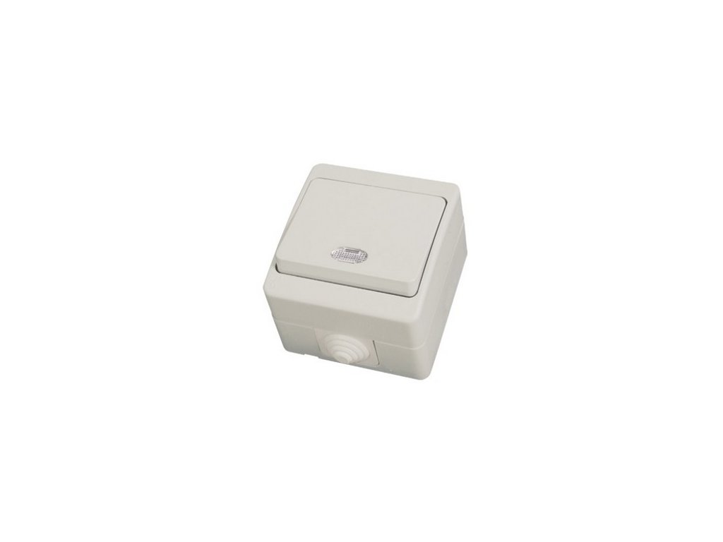 Striedavý prepínač č. 6 so zvýšenou IP ochranou proti vode a prachu, pre bezpečné použitie aj vo vlhkých priestoroch. S podsvietením.