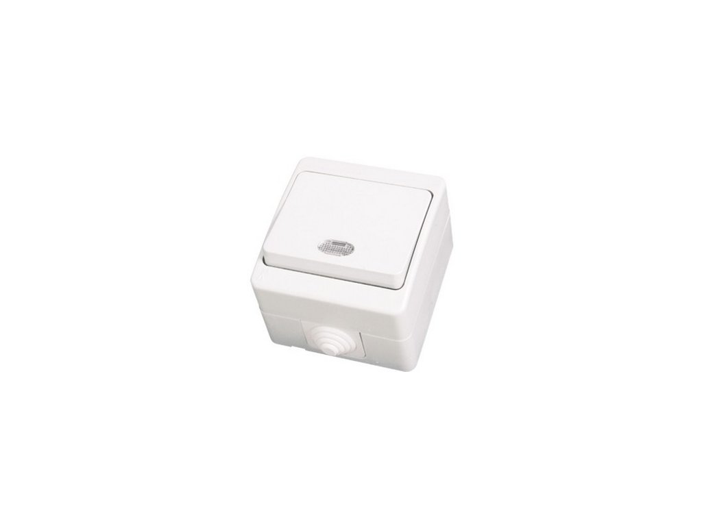 Striedavý prepínač č. 6 so zvýšenou IP ochranou proti vode a prachu, pre bezpečné použitie aj vo vlhkých priestoroch. S podsvietením.