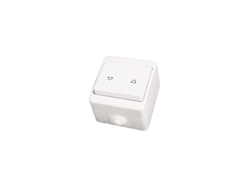 Tlačidlo na ovládanie žalúzií smerom hore a dole, so zvýšenou IP ochranou proti vode a prachu, pre bezpečné použitie aj vo vlhkých priestoroch.