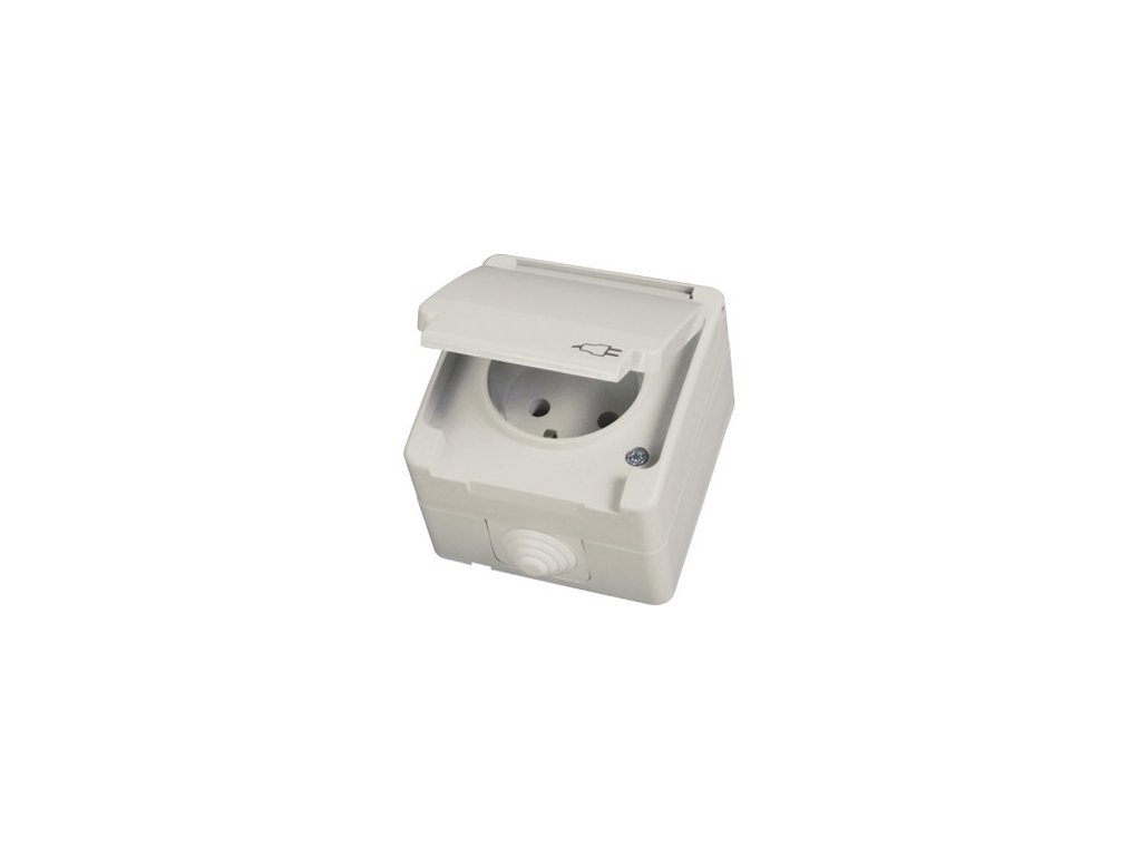 Zásuvka 2P s krytom a detskou ochranou, so zvýšenou IP ochranou proti vode a prachu, pre bezpečné použitie aj vo vlhkých priestoroch.